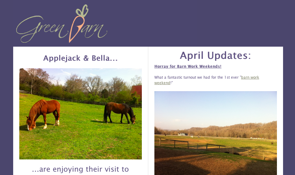 Interested in what’s going on at the Green Barn?  Check out our April newsletter :)