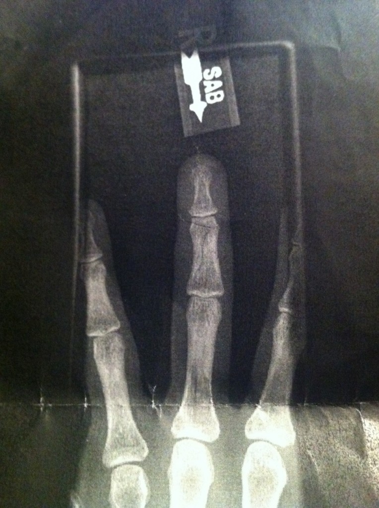 for those who are interested, I fractured my middle phalanx… sigh… and owwww…